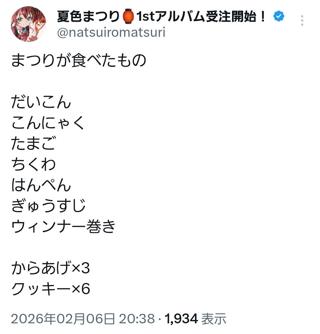 | … | 944無題Name名無し 26/02/06(金)21:26:14 IP:60.56.*(eonet.ne.jp)No.11489075+残ったらまつりちゃんが全部持って帰りそう |