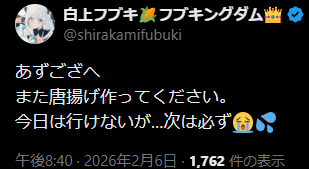 | … | 13無題Name名無し 26/02/06(金)20:19:56 IP:60.236.*(mesh.ad.jp)No.11488120+まちゅのために唐揚げ揚げたい |
