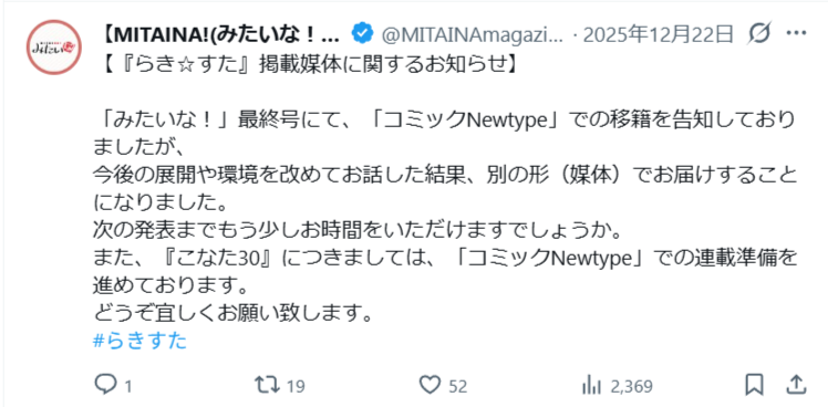 | … | 81無題Name名無し 26/02/07(土)20:27:51 IP:126.36.*(bbtec.net)No.11496524そうだねx3毎日のようにかなたその生存報告を聞いてるので実は長期休暇してるんじゃないかといまだに錯覚する |