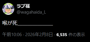 | … | 52無題Name名無し 26/02/08(日)01:08:16 IP:180.46.*(ocn.ne.jp)No.11498540+おかゆバイオの時とは別人みたいな声だす |