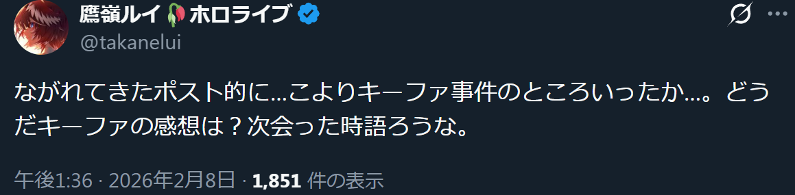| … | 88無題Name名無し 26/02/08(日)13:42:26 IP:111.217.*(nuro.jp)No.11500720+こうなったらホロックス全員7やってくれないかな |