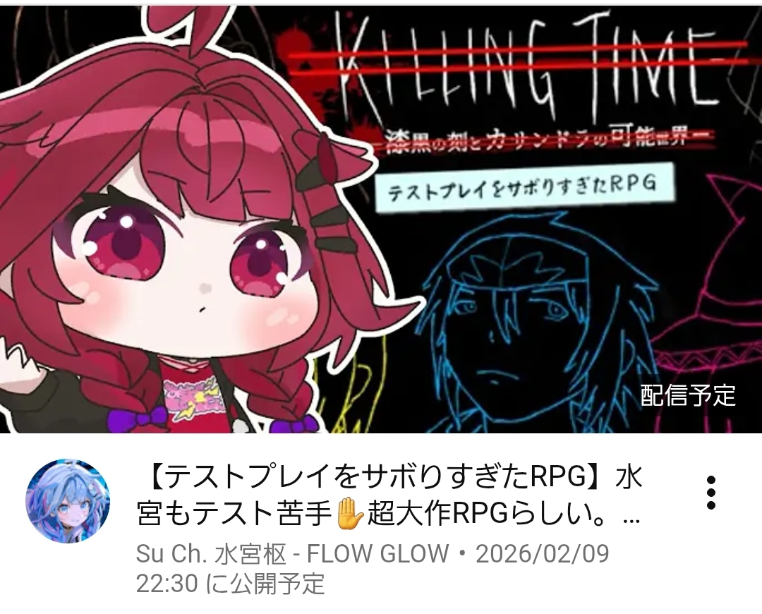 | … | 58無題Name名無し 26/02/08(日)23:55:50 IP:126.167.*(openmobile.ne.jp)No.11503811そうだねx1すうちゃん明日テストプレイサボりすぎたRPG予定か |