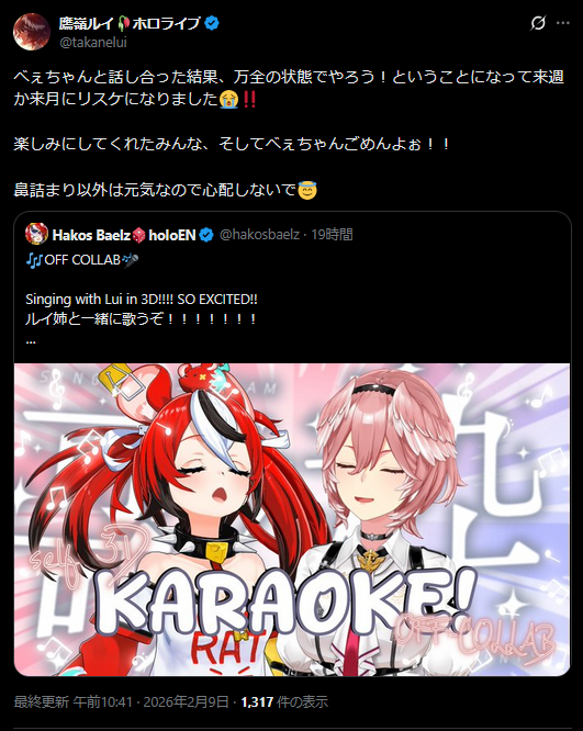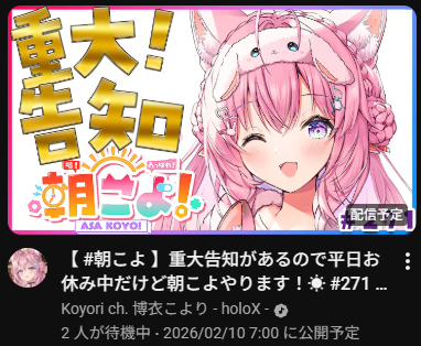 | … | 993無題Name名無し 26/02/09(月)19:11:44 IP:1.73.*(spmode.ne.jp)No.11504940+>他のホロメンのもだけど再公開される事はあるのかな |