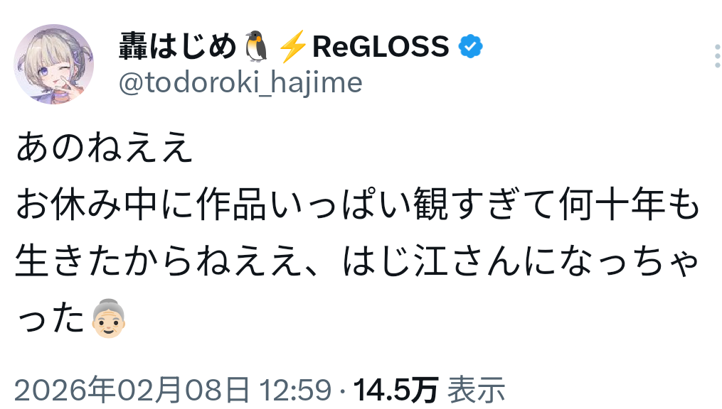 | … | 39無題Name名無し 26/02/08(日)23:50:24 IP:118.9.*(ocn.ne.jp)No.11503792そうだねx3ロクゼロのキャラデザの人のX見に行ったらめっちゃホロリスなのね |