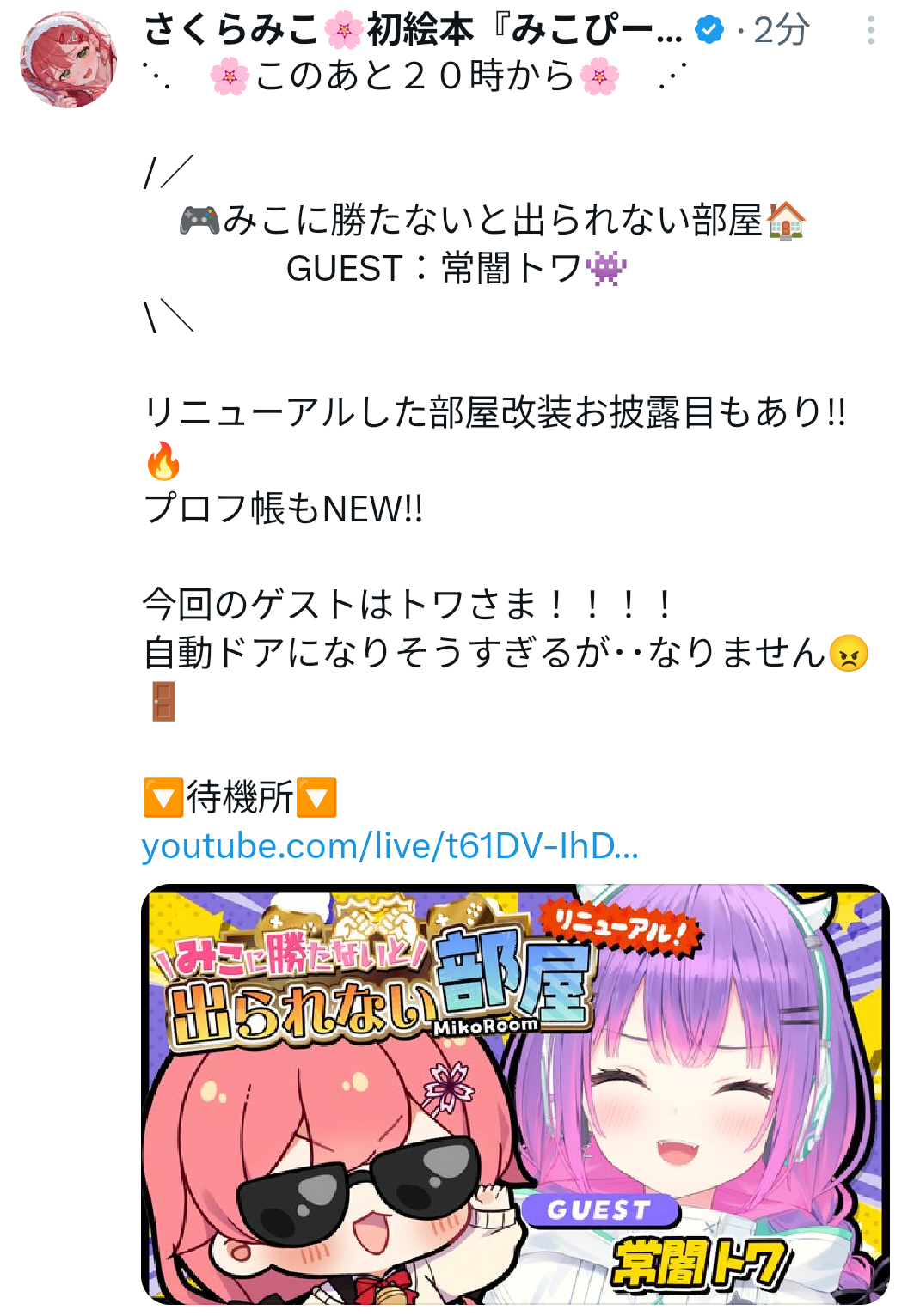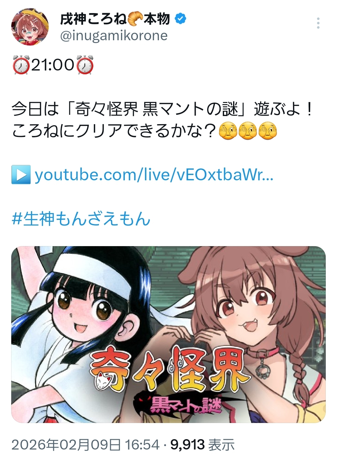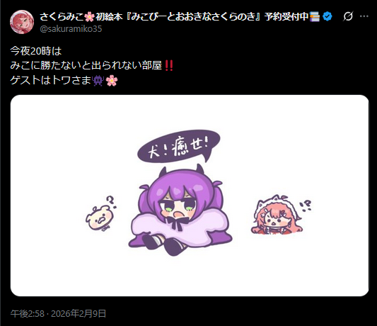 | … | 904無題Name名無し 26/02/09(月)18:27:27 IP:221.113.*(v6connect.net)No.11504840+確かにぺこちゃんがVCRGTAに来たら特大ニュースではあるが… |