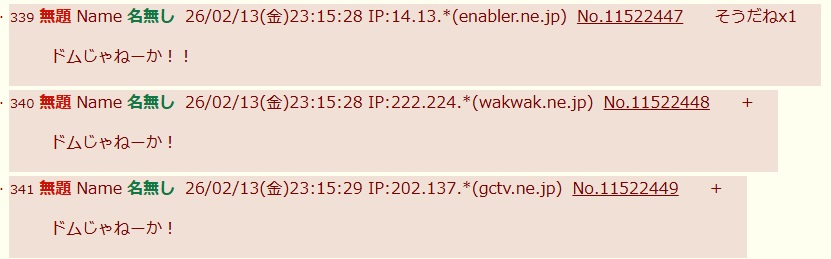 | … | 88無題Name名無し 26/02/13(金)23:05:49 IP:153.178.*(ocn.ne.jp)No.11522194+サイアクダゼ… |