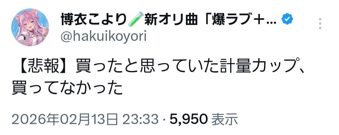 | … | 967無題Name名無し 26/02/13(金)23:44:02 IP:106.73.*(enabler.ne.jp)No.11523078+>こよちゃん…? |