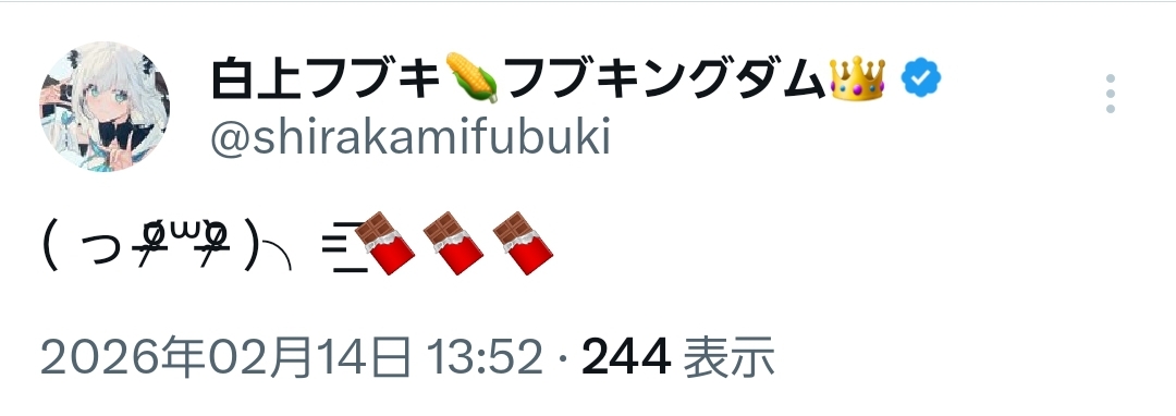| … | 87無題Name名無し 26/02/14(土)12:11:01 IP:180.92.*(c3-net.ne.jp)No.11526312+言われてみれば日本の時間帯でバレンタインだけど向こうではまだ13日か |