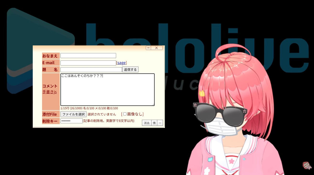 | … | 72無題Name名無し 26/02/25(水)20:37:06 IP:106.146.*(au-net.ne.jp)No.11585891そうだねx9>ホロプラスってホロメンがアソコおっぴろげーしてるようなR18ファンアート投稿できるの? |