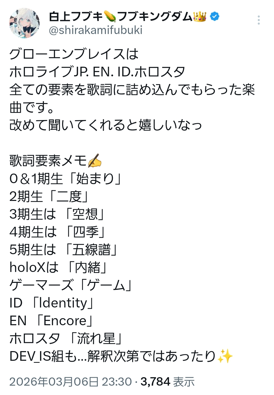 | … | 903無題Name名無し 26/03/07(土)05:51:58 IP:133.106.*(ipv4)No.11636876そうだねx1「ステージ上のすうちゃんはでかい」 |
