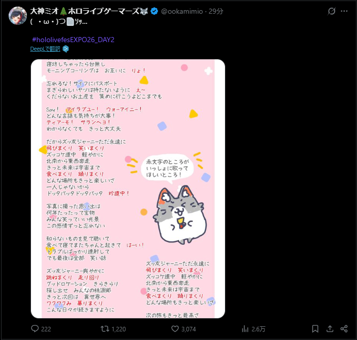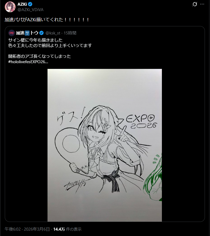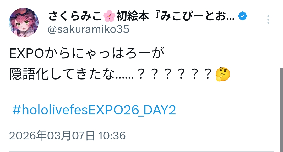 | … | 745無題Name名無し 26/03/07(土)11:35:40 IP:106.73.*(enabler.ne.jp)No.11637827+このあとEXPO配信はフェスまで何もないんだっけ? |