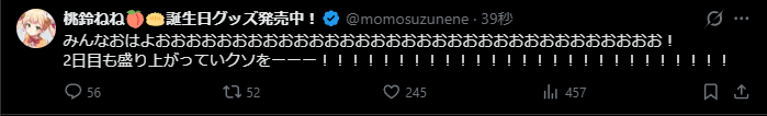| … | 728無題Name名無し 26/03/07(土)11:19:55 IP:42.125.*(thn.ne.jp)No.11637797+わためあずきちでディーバフィーバーとフワモコでバウンサーバウンスのブースターネーミング良すぎて好き |