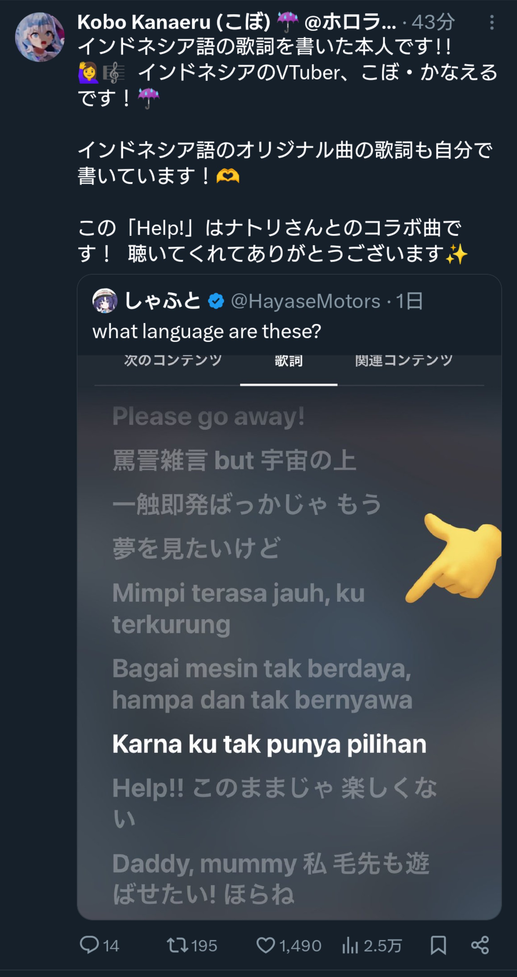| … | 691無題Name名無し 26/03/07(土)11:10:34 IP:210.174.*(so-net.ne.jp)No.11637758+>そらちゃんはホロライブの始祖だからこれ乗っていいと思う |