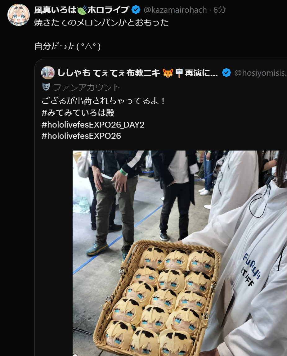 | … | 59無題Name名無し 26/03/07(土)08:57:21 IP:58.183.*(megaegg.ne.jp)No.11637091+>女児団員さんとか新衣装のパンクぺこちゃんコスの女児とか見かけて本当に人気なんだなと思う今日 |