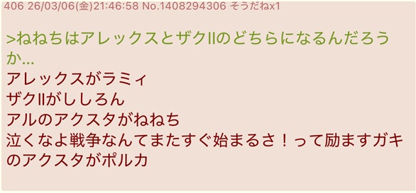 | … | 755無題Name名無し 26/03/07(土)11:40:50 IP:1.75.*(spmode.ne.jp)No.11637839+>らねぼぽ… |