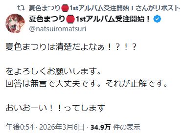 | … | 499無題Name名無し 26/03/07(土)15:26:33 IP:153.184.*(ocn.ne.jp)No.11642391そうだねx1 1772864793443.png-(9776 B) 店長が応援枠に降臨中 |
