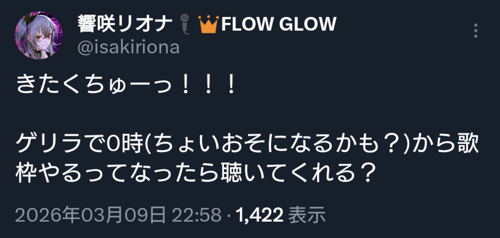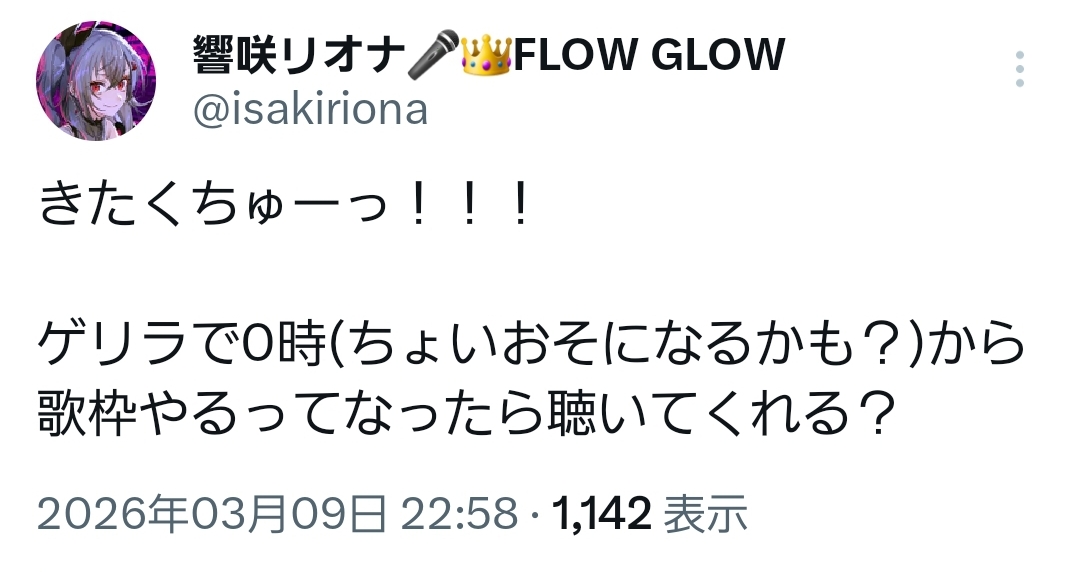 | … | 974無題Name名無し 26/03/09(月)23:11:24 IP:202.7.*(megaegg.ne.jp)No.11664745そうだねx2可愛い歌声だけどところどころ力強いのが隠せてないな |