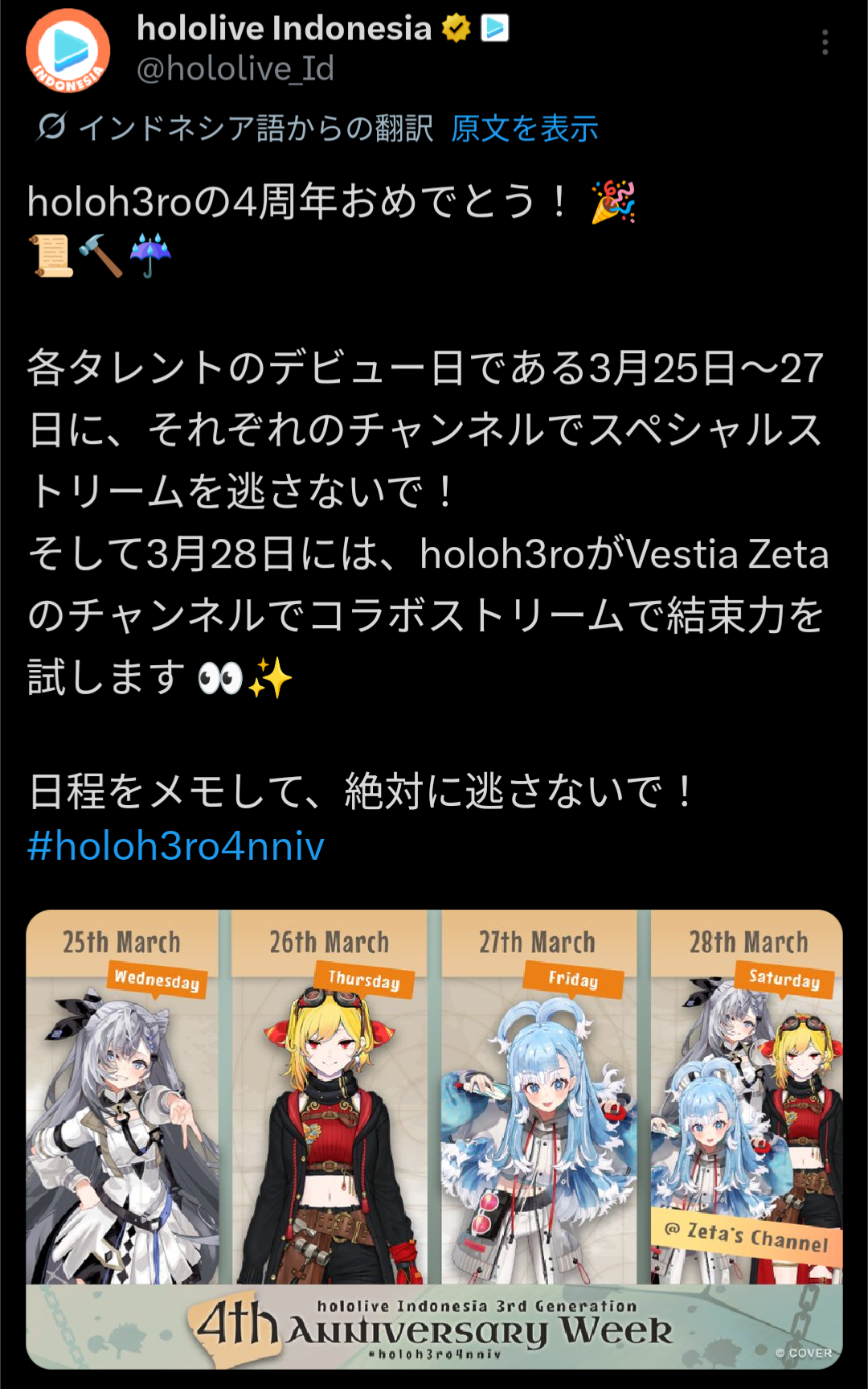 | … | 5無題Name名無し 26/03/11(水)10:10:25No.11668896+>holoh3loももう4周年か |