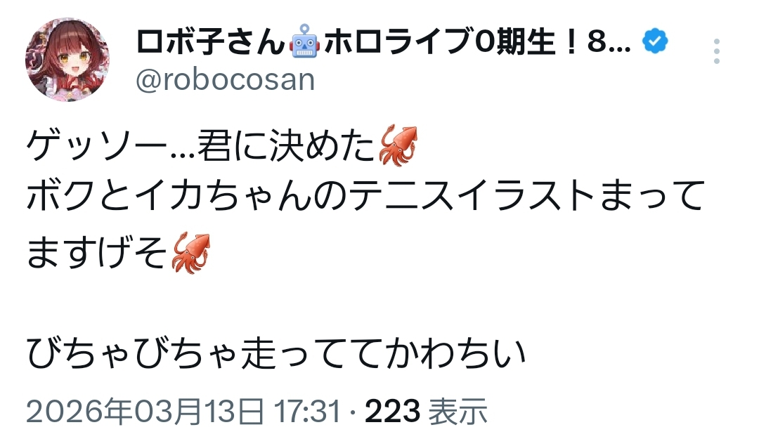 | … | 103無題Name名無し 26/03/13(金)17:37:48 IP:119.229.*(eonet.ne.jp)No.11677917+>>ロボ子さんゲッソーで行く模様 |