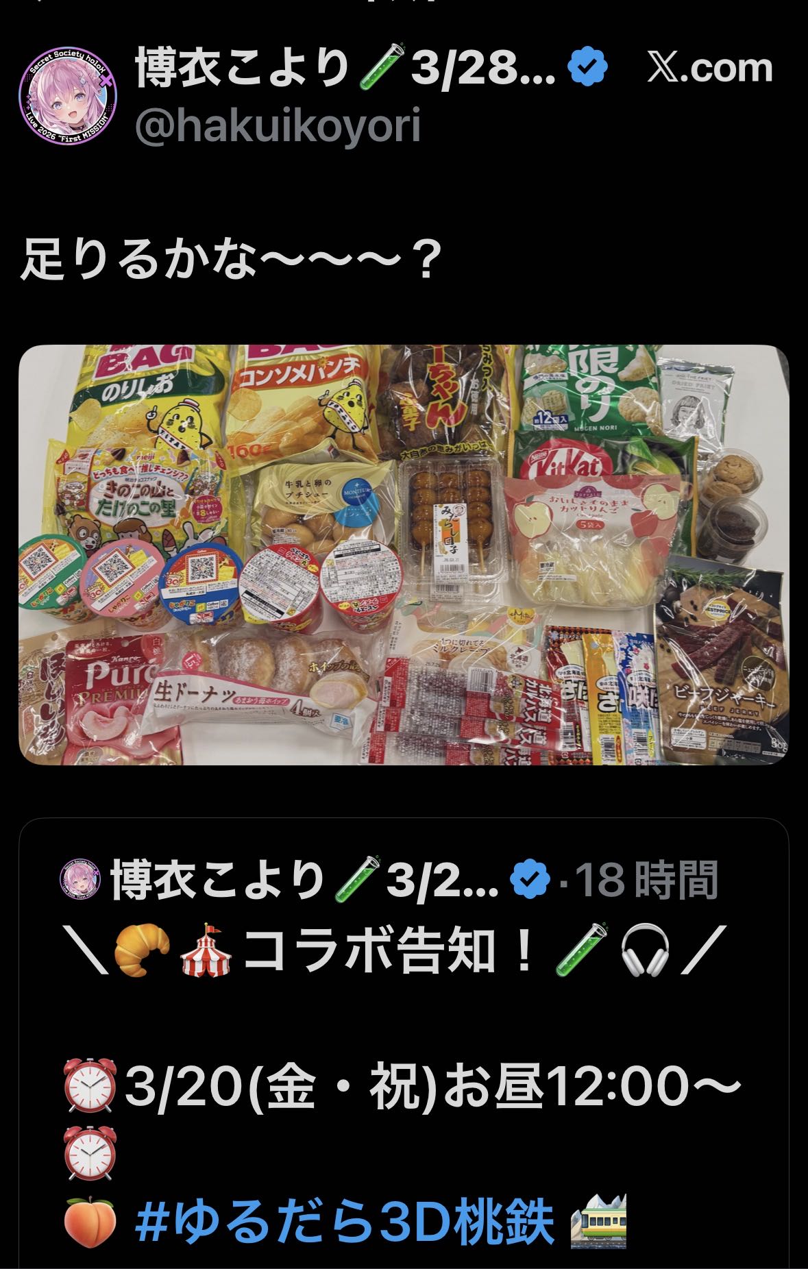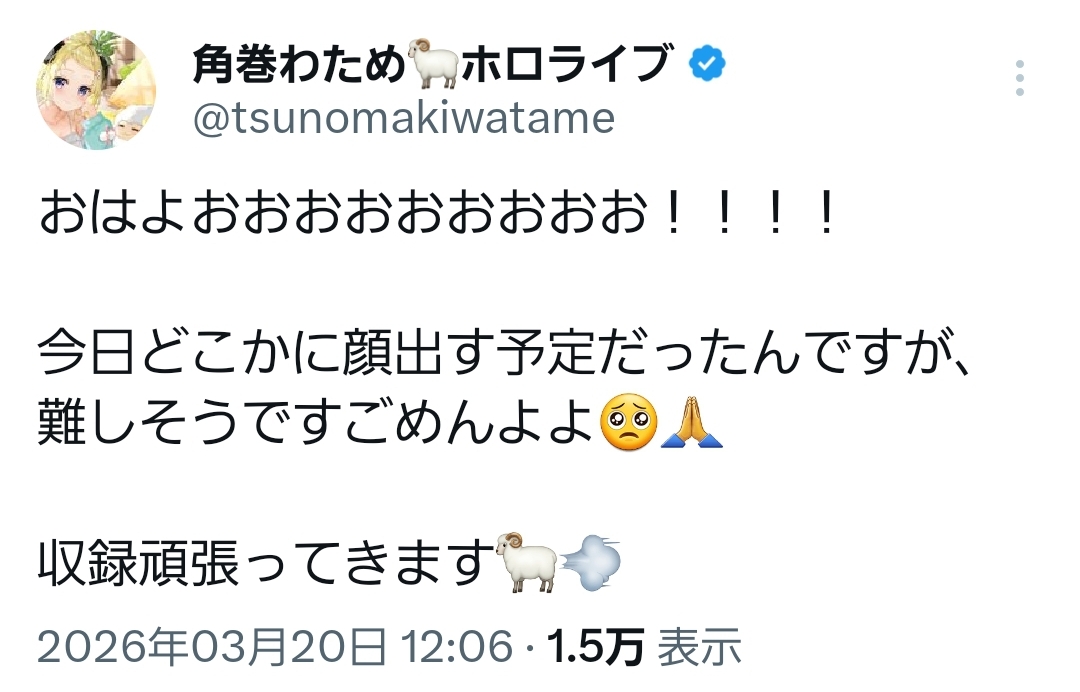 | … | 90無題Name名無し 26/03/20(金)11:07:49 IP:125.196.*(mesh.ad.jp)No.11714050+>ホロメンの健康は確実に守護られつつある |