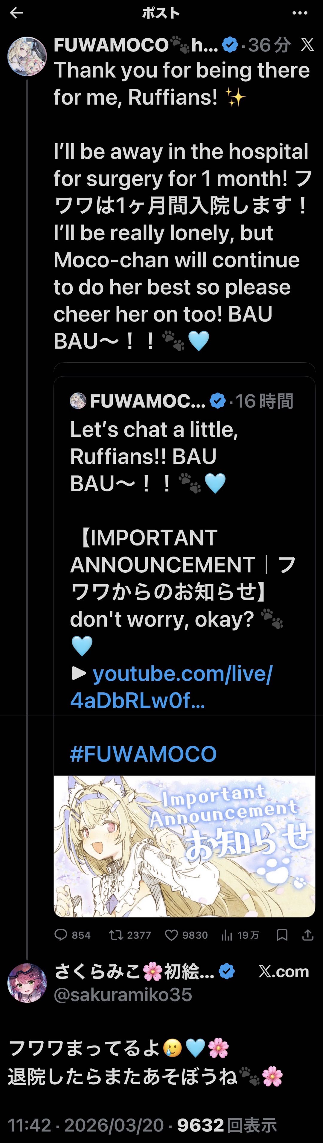 | … | 74無題Name名無し 26/03/20(金)11:07:10 IP:125.196.*(mesh.ad.jp)No.11714033+フワモコの活動はしばらくの間さよなら |