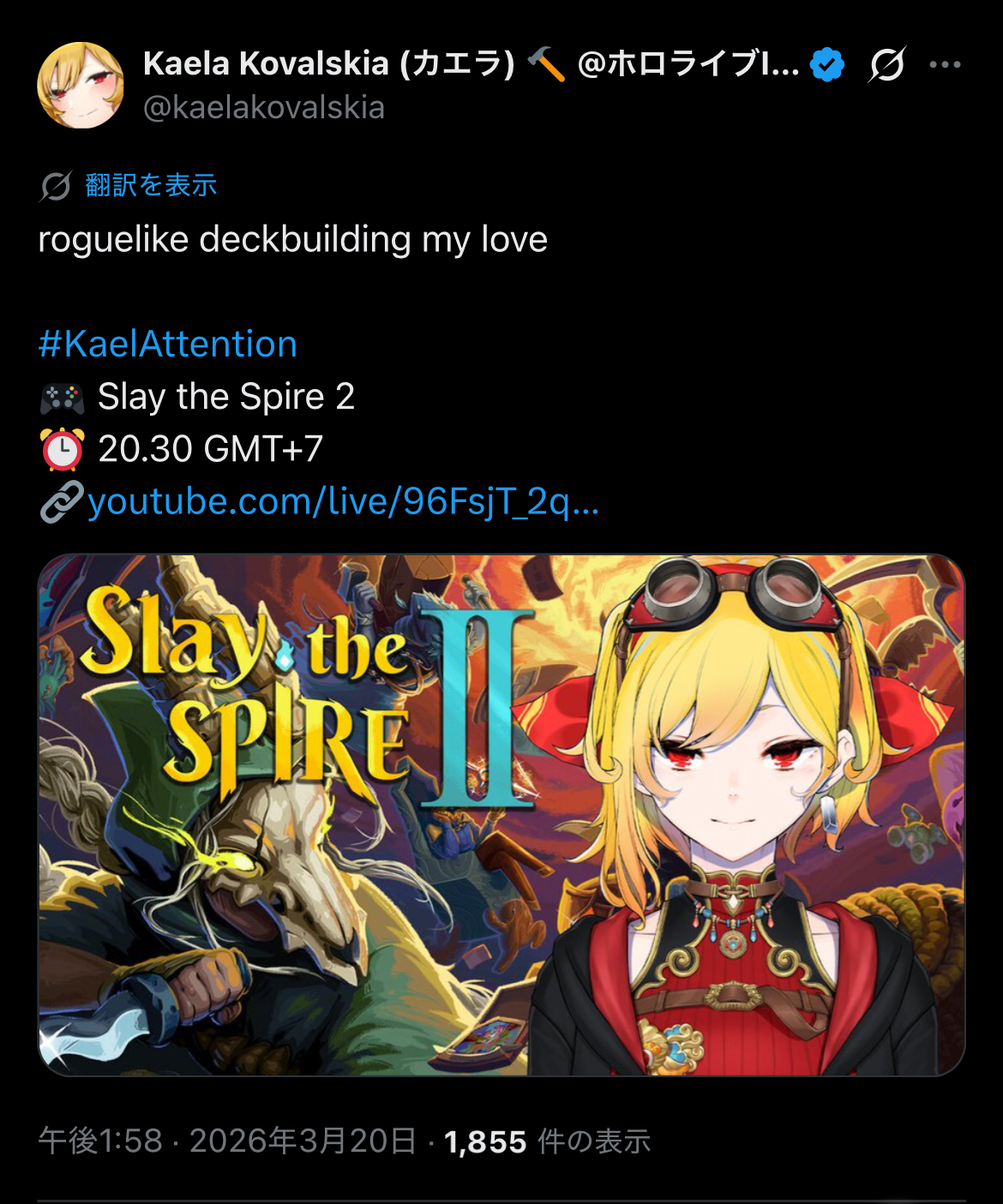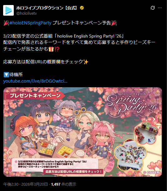 | … | 69無題Name名無し 26/03/20(金)13:15:43 IP:221.44.*(bbtec.net)No.11715089そうだねx3よく考えたらSNKのキャラとホロライブのタレントが載ったグッズがカプコンのソフトの大会でグッズ出るの意味分からんな |