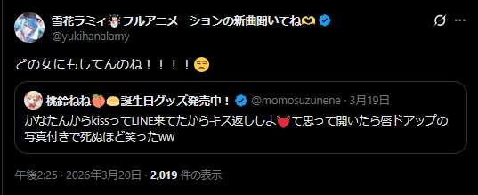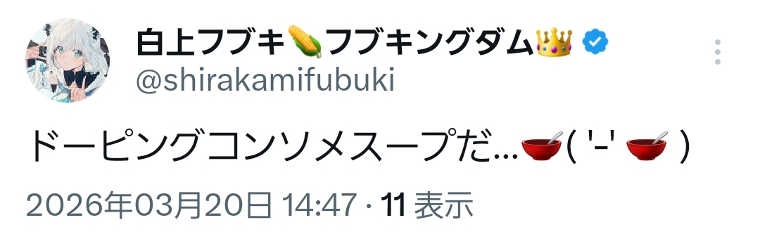 | … | 31無題Name名無し 26/03/20(金)13:12:06 IP:222.9.*(commufa.jp)No.11715050そうだねx2>ころさん発のホロメンミーム結構多いよね… |