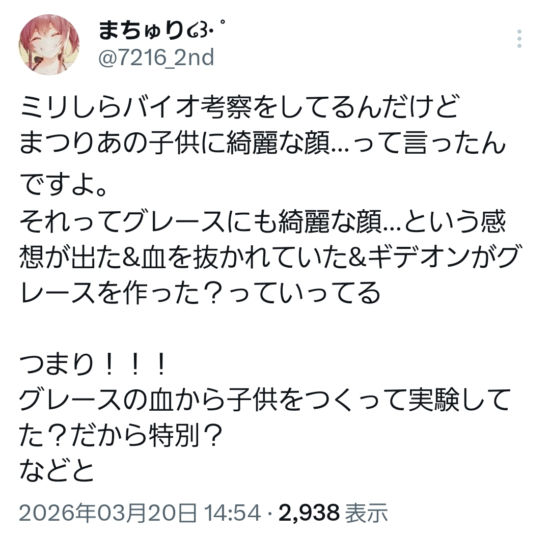| … | 940無題Name名無し 26/03/20(金)15:20:36 IP:116.65.*(home.ne.jp)No.11716001そうだねx3 1773987636850.jpg-(204915 B) 本文無し |