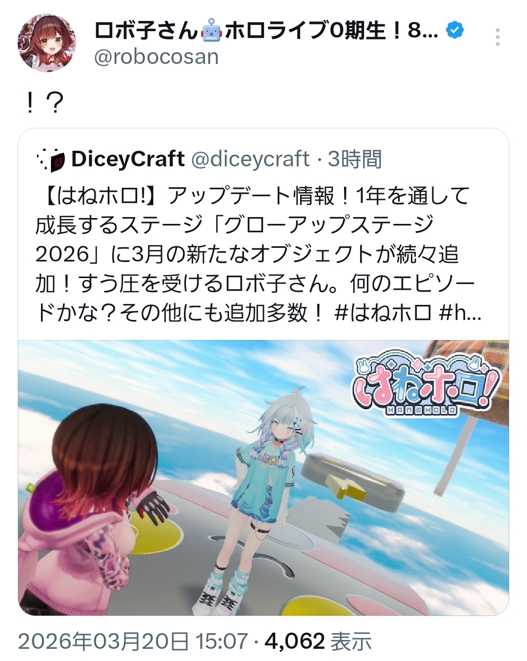 | … | 926無題Name名無し 26/03/20(金)15:16:11 IP:106.129.*(au-net.ne.jp)No.11715986そうだねx1 1773987371084.jpg-(636614 B) ロボ子さんが恐怖してる… |