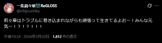 | … | 939無題Name名無し 26/03/20(金)22:58:11 IP:36.13.*(dion.ne.jp)No.11720117そうだねx2>>この10時間で千速もうホロライブ歴5年目くらいの風格でた |