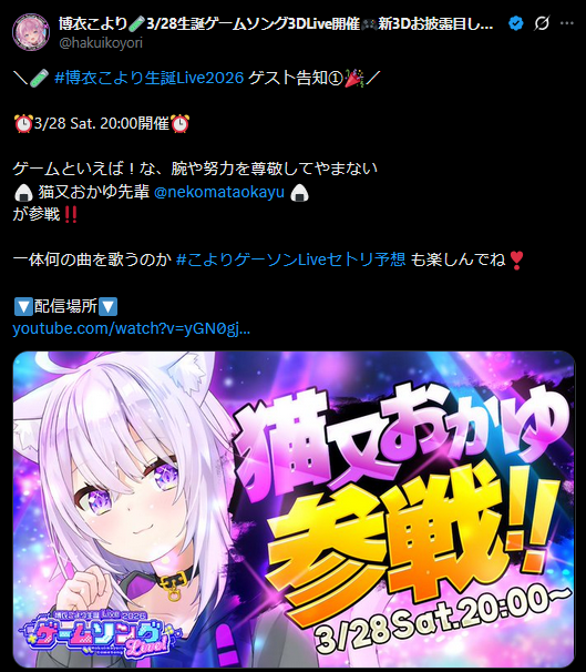 | … | 93無題Name名無し 26/03/21(土)18:01:10 IP:106.178.*(dion.ne.jp)No.11724609+フワモコ二人での配信はしばらく見納めか |