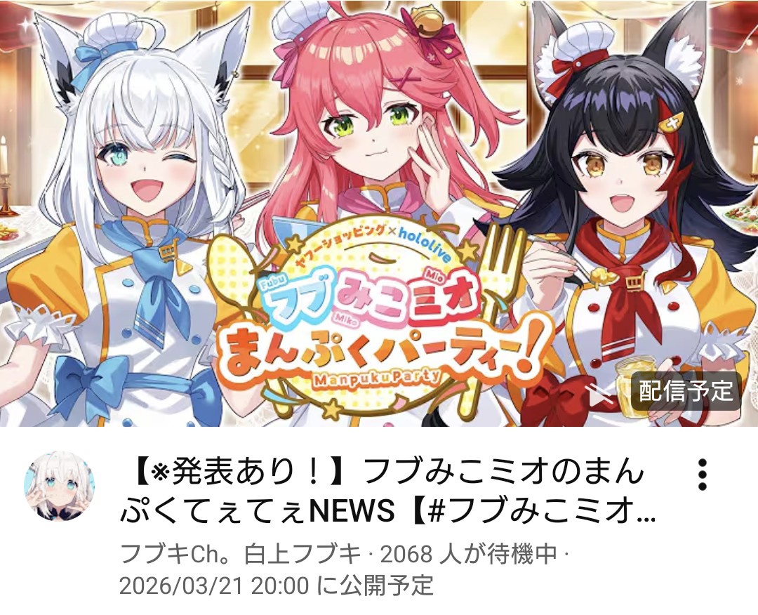 | … | 917無題Name名無し 26/03/21(土)20:18:13 IP:180.92.*(c3-net.ne.jp)No.11725483+フブミオ・・・フブみこミオ |