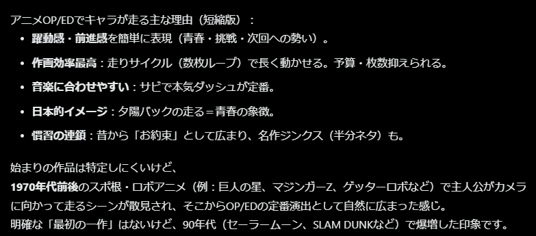 | … | 59無題Name名無し 26/03/21(土)22:14:20 IP:133.106.*(ipv4)No.11727668+だから海外ニキには「なぜ日本のアニメのOPやEDではキャラが走っているんだい?」と聞かれやすい |