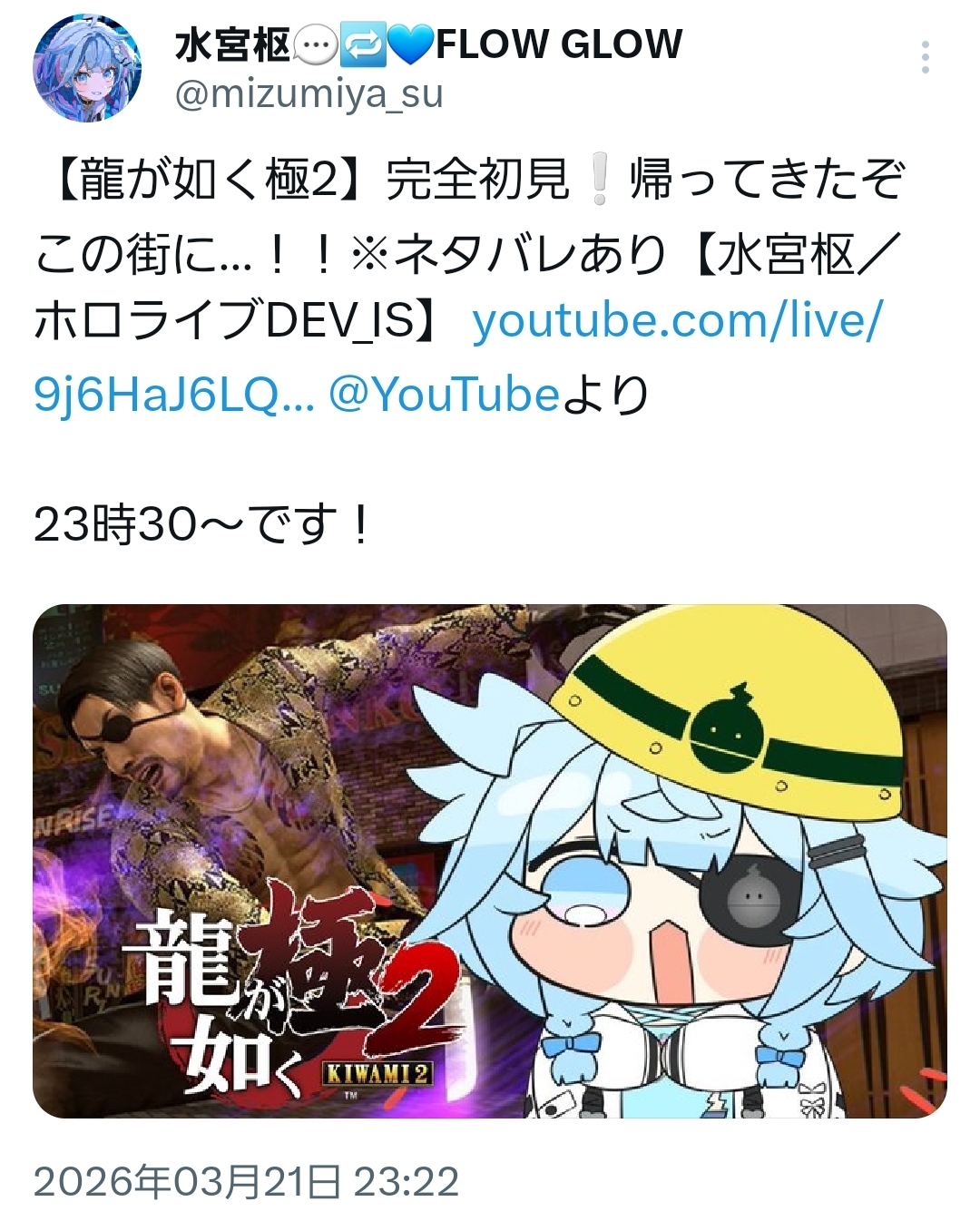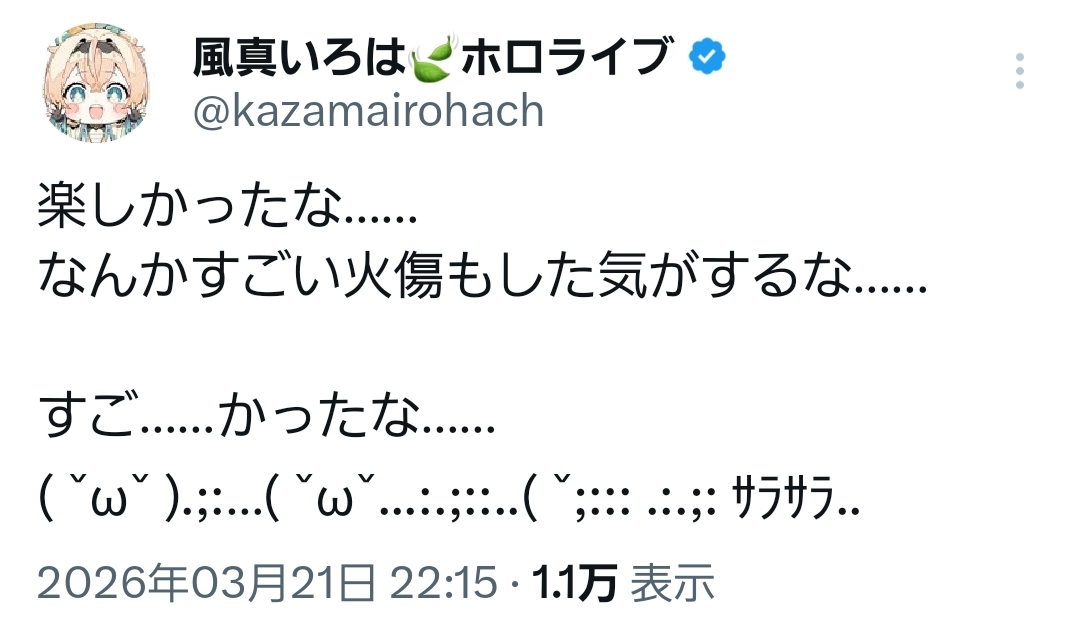 | … | 916無題Name名無し 26/03/21(土)23:41:00 IP:222.9.*(commufa.jp)No.11728562+すいちゃんなんか出てるらしい… |