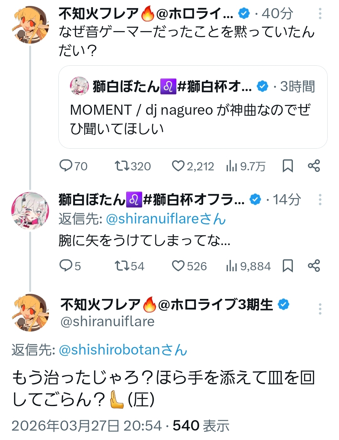 | … | 990無題Name名無し 26/03/27(金)22:27:20 IP:27.140.*(home.ne.jp)No.11759042そうだねx1みこち? |
