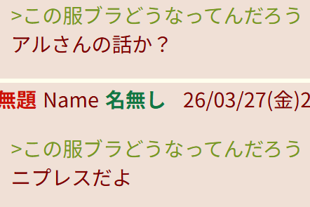 | … | 41無題Name名無し 26/03/27(金)20:47:38 IP:14.13.*(enabler.ne.jp)No.11758055+普通…? |
