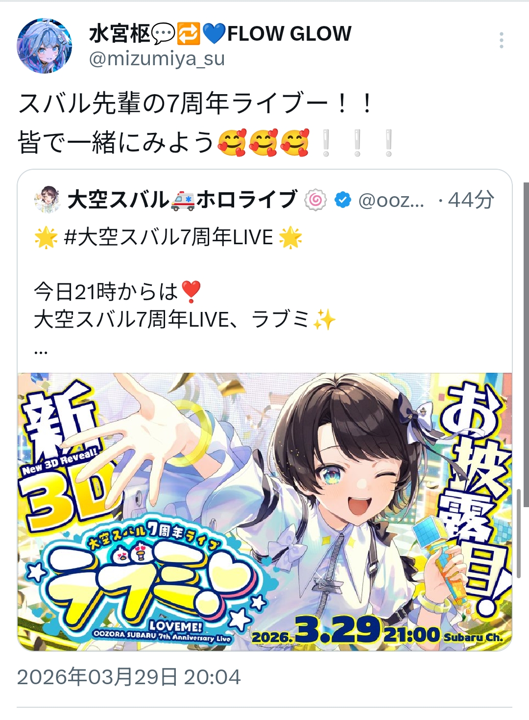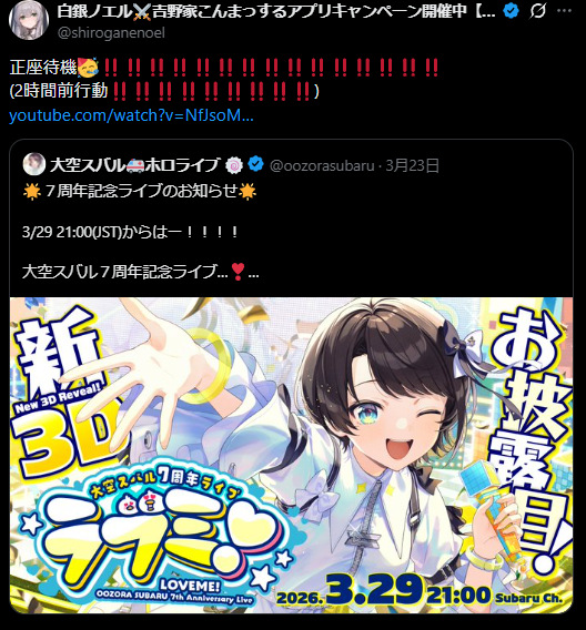 ところでなぜスバルのライブ予告をリポストしてるんです?