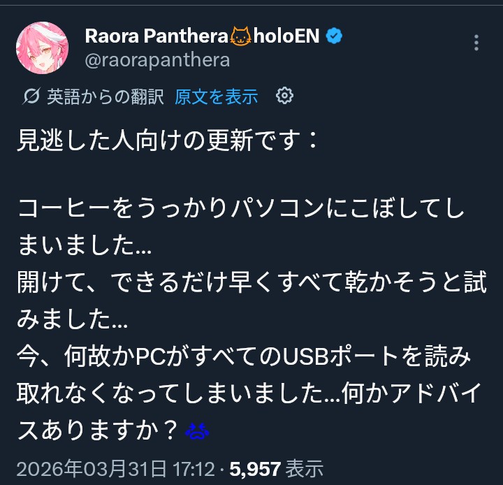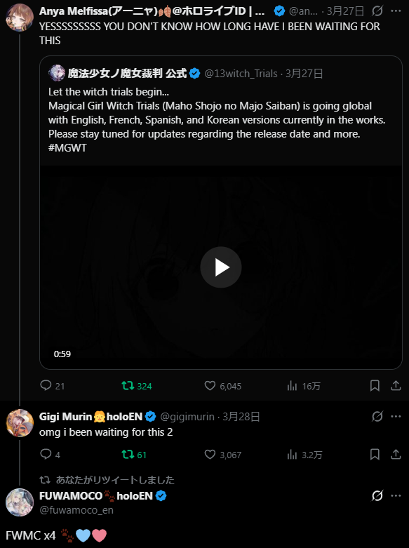 | … | 51無題Name名無し 26/04/01(水)00:24:44No.11789635+ENのPVをkanauru神が一手に引き受けてるからか海外ニキが |