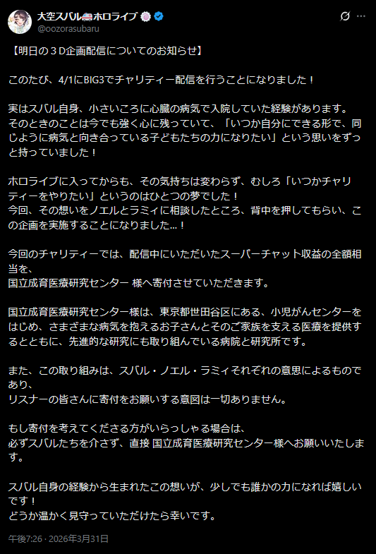 | … | 81無題Name名無し 26/03/31(火)19:35:59 IP:220.100.*(bbexcite.jp)No.11784955+>これって要するにスパチャ分を寄付するけど直接寄付してくれた方が |