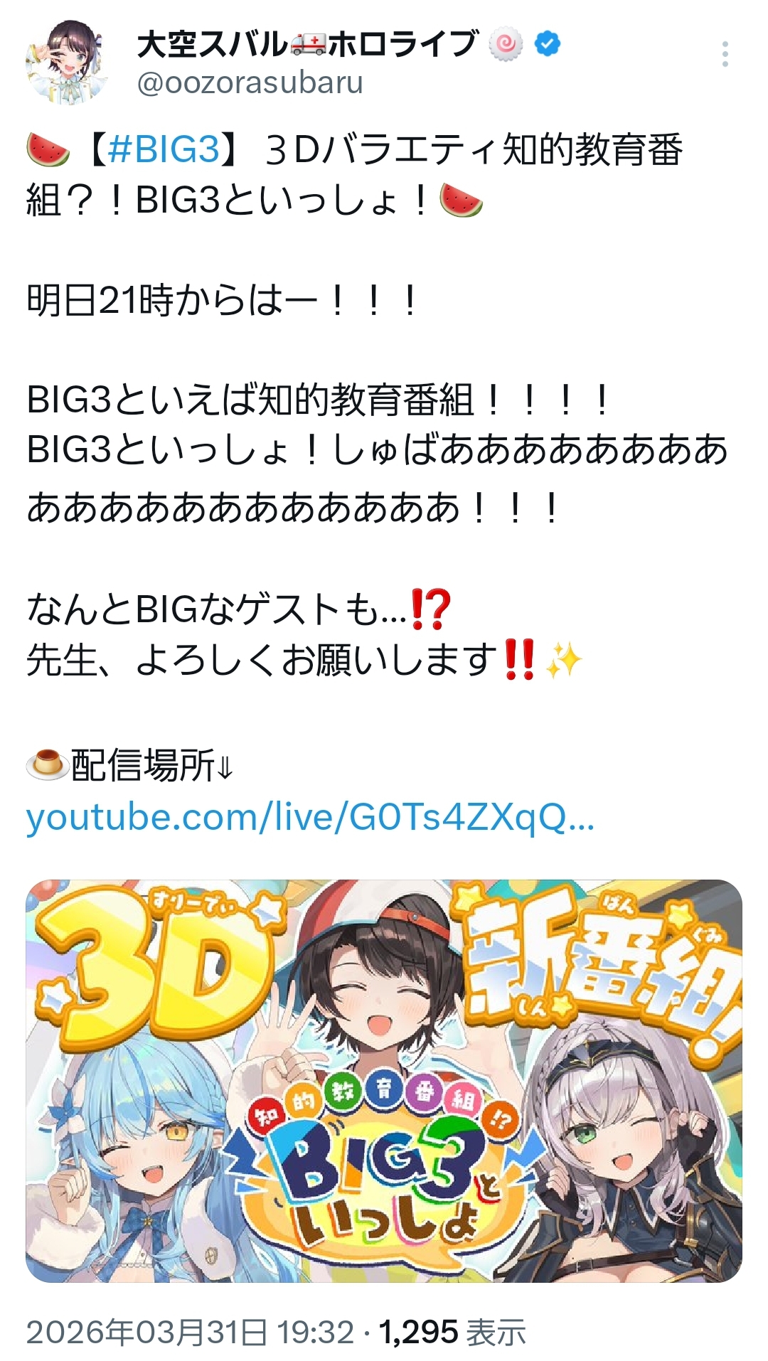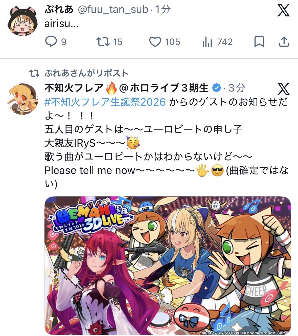 | … | 915無題Name名無し 26/03/31(火)21:03:20 IP:60.137.*(bbtec.net)No.11785814+フワモコ枠かと思ったらみこちの枠だった |