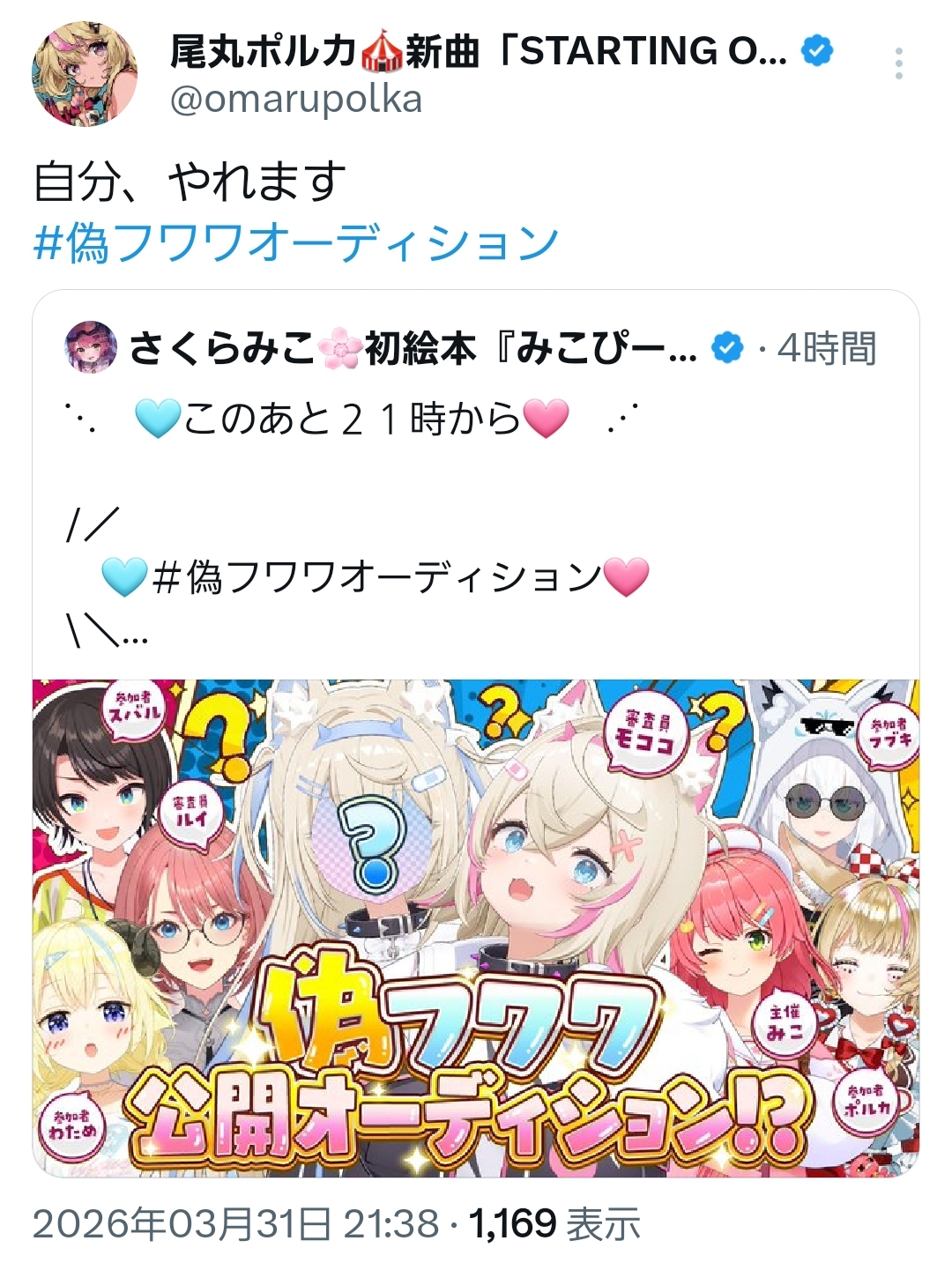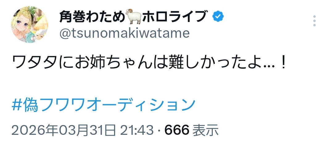 | … | 54無題Name名無し 26/03/31(火)21:37:38 IP:60.87.*(ipv4)No.11786965そうだねx1これフワモコの配信見てないと足切りされるな… |