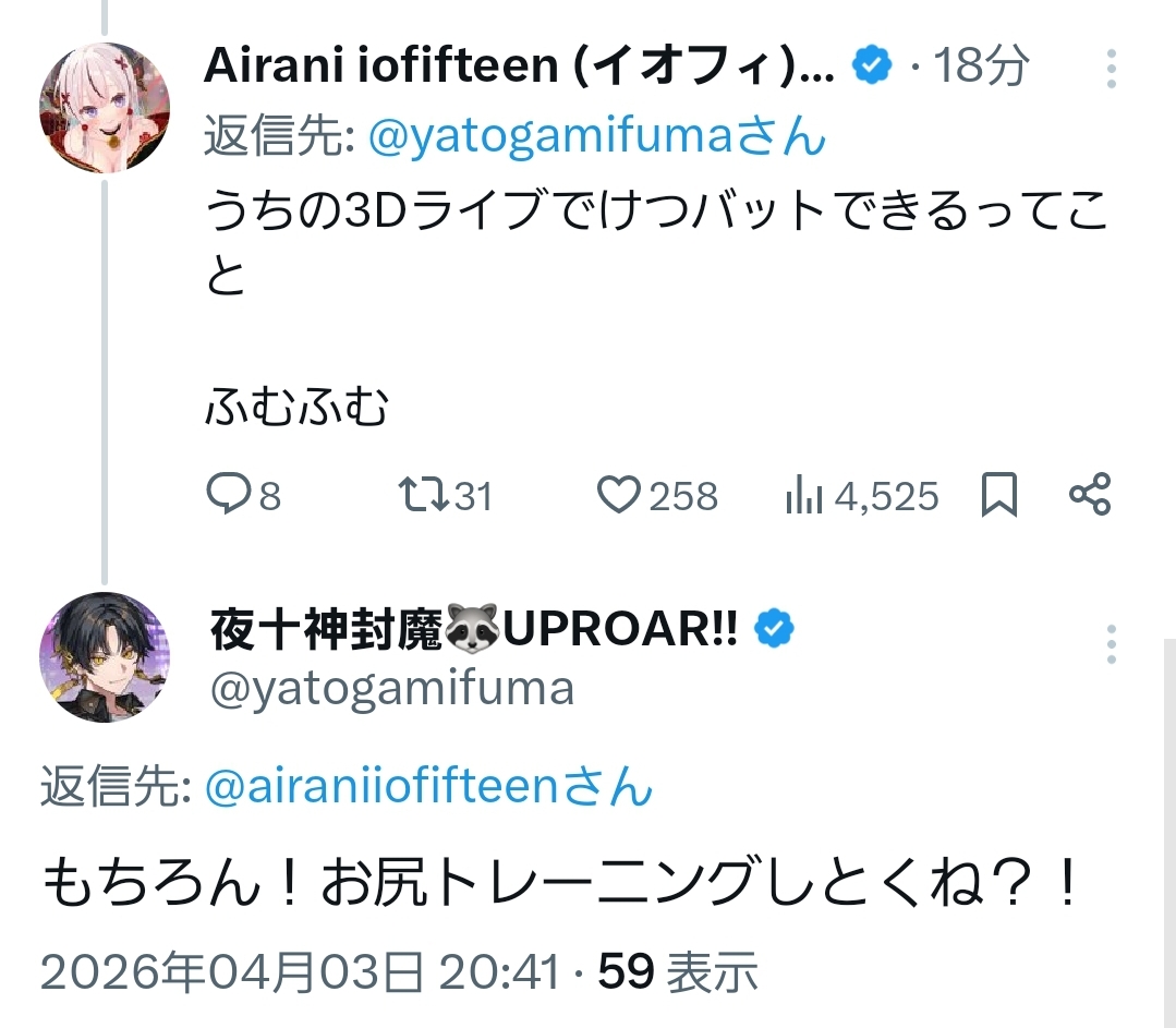 | … | 60無題Name名無し 26/04/03(金)20:11:48 IP:128.22.*(eonet.ne.jp)No.11808293+おかゆは何で笑わずにこれできるの? |