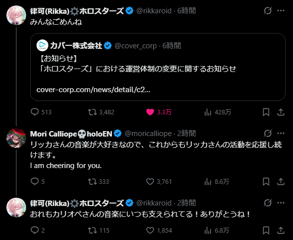 • ホロライブ、イノナカミュージック、ホロライブゲーマーズ、ホロスターズ、ホロライブID、ホロライブENなど