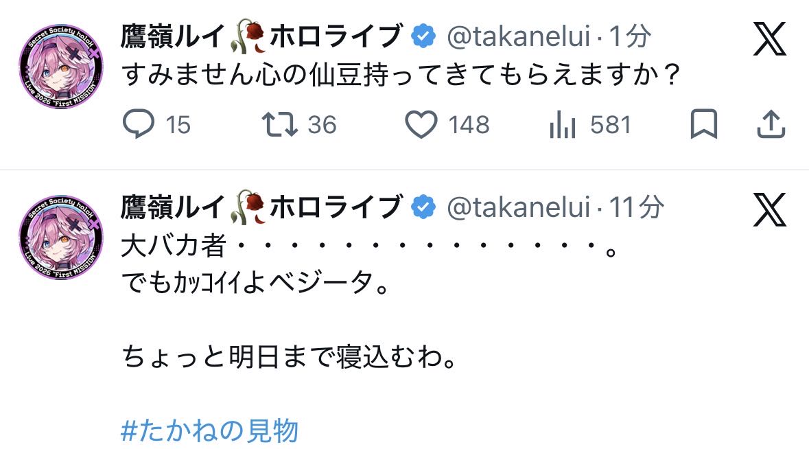 | … | 957無題Name名無し 26/04/04(土)20:13:24 IP:60.87.*(ipv4)No.11815604+>ころさんだけ観てゼットン聞かないずるいころねすきーがおるな… |