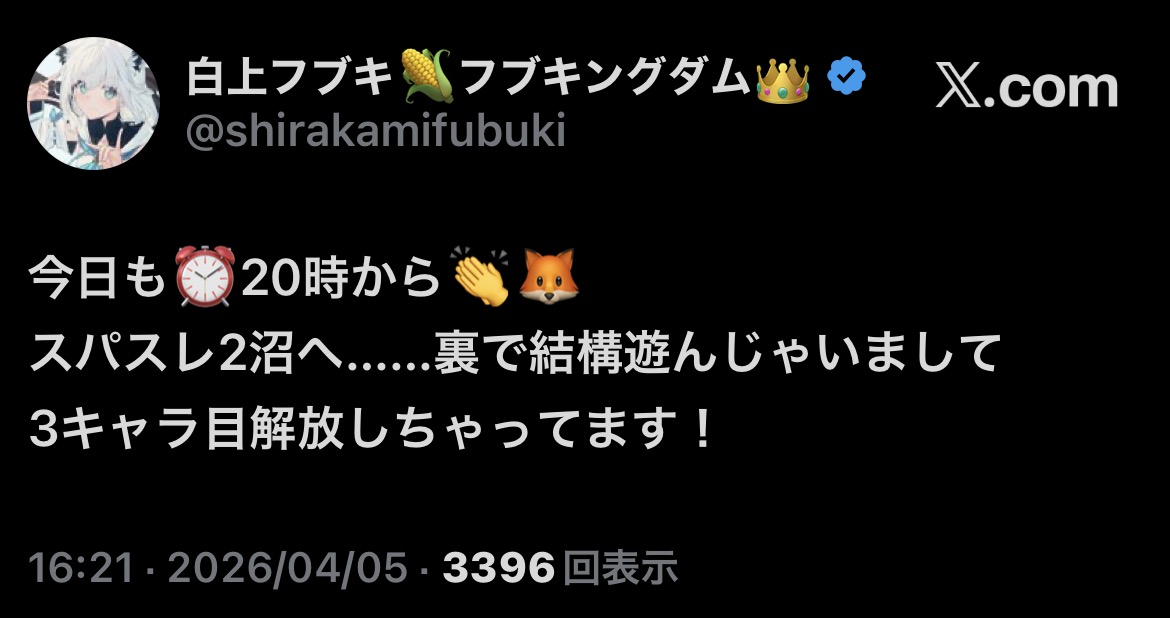 | … | 908無題Name名無し 26/04/05(日)18:48:56 IP:153.188.*(ocn.ne.jp)No.11822941+すいちゃん待機してるけどこのBGMめっちゃ眠くなるな… |