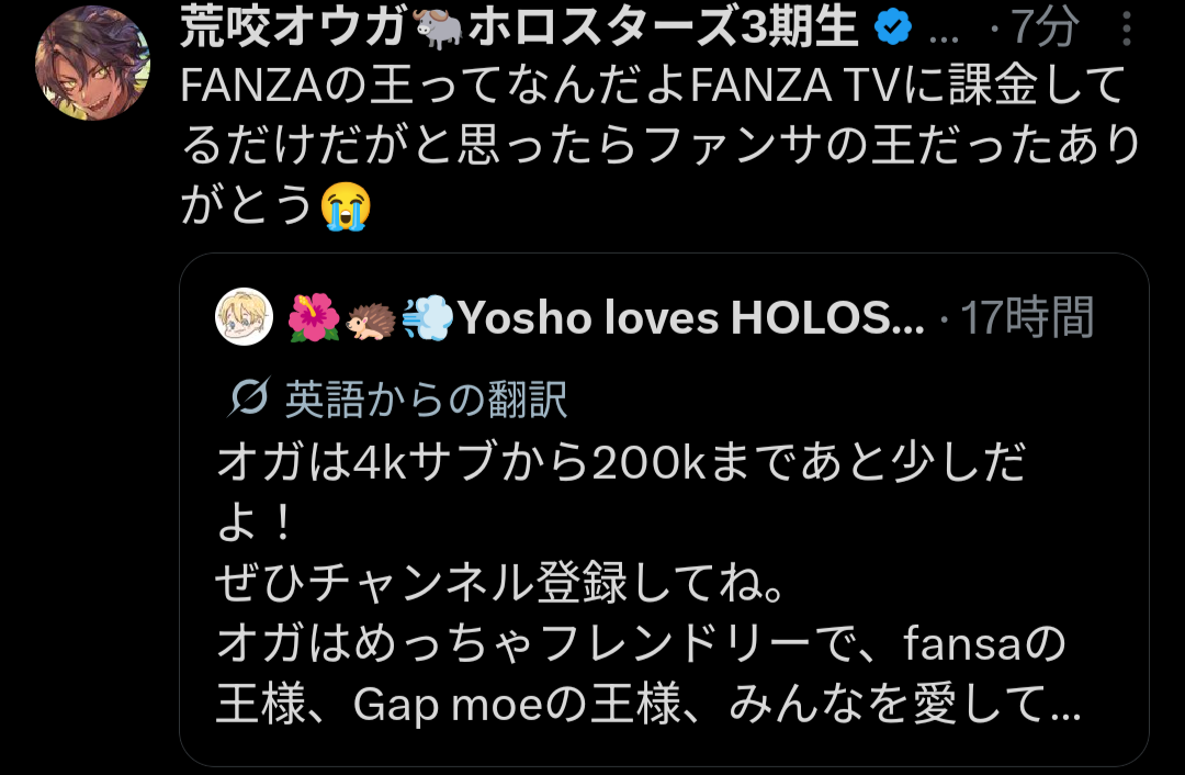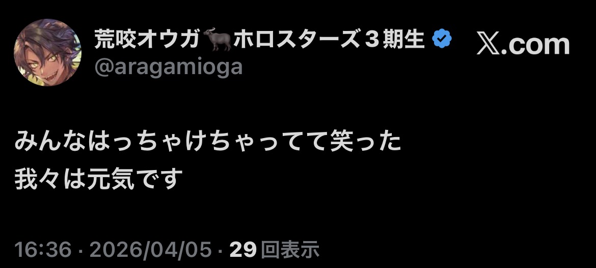 | … | 960無題Name名無し 26/04/05(日)19:05:25 IP:106.72.*(enabler.ne.jp)No.11823004+リグロスからホロスタへのエール |
