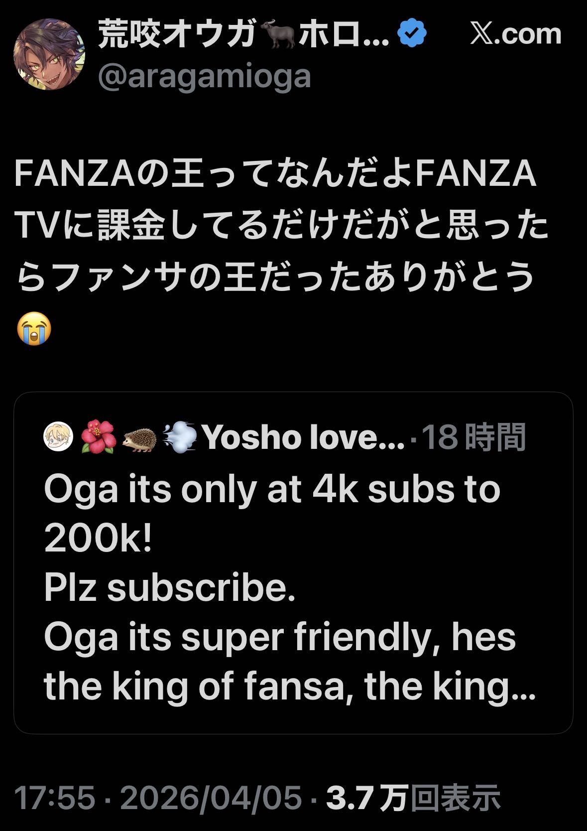 | … | 987無題Name名無し 26/04/05(日)19:10:35 IP:126.147.*(bbtec.net)No.11823035+アドリブに弱いばんちょー |