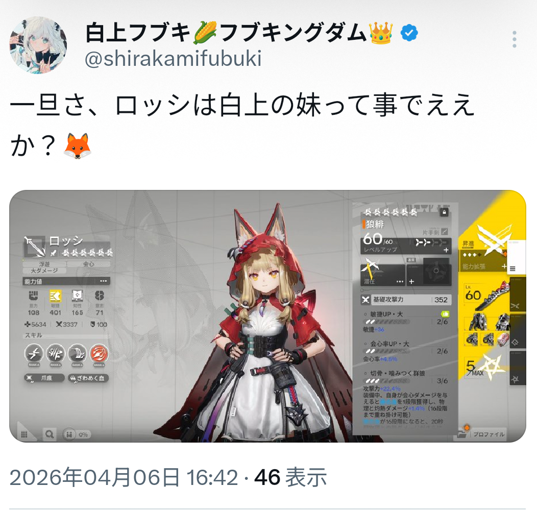 | … | 45無題Name名無し 26/04/06(月)16:51:58 IP:60.102.*(bbtec.net)No.11826348そうだねx5 1775461918034.jpg-(20579 B) >妹にはならないけど妹にはする |