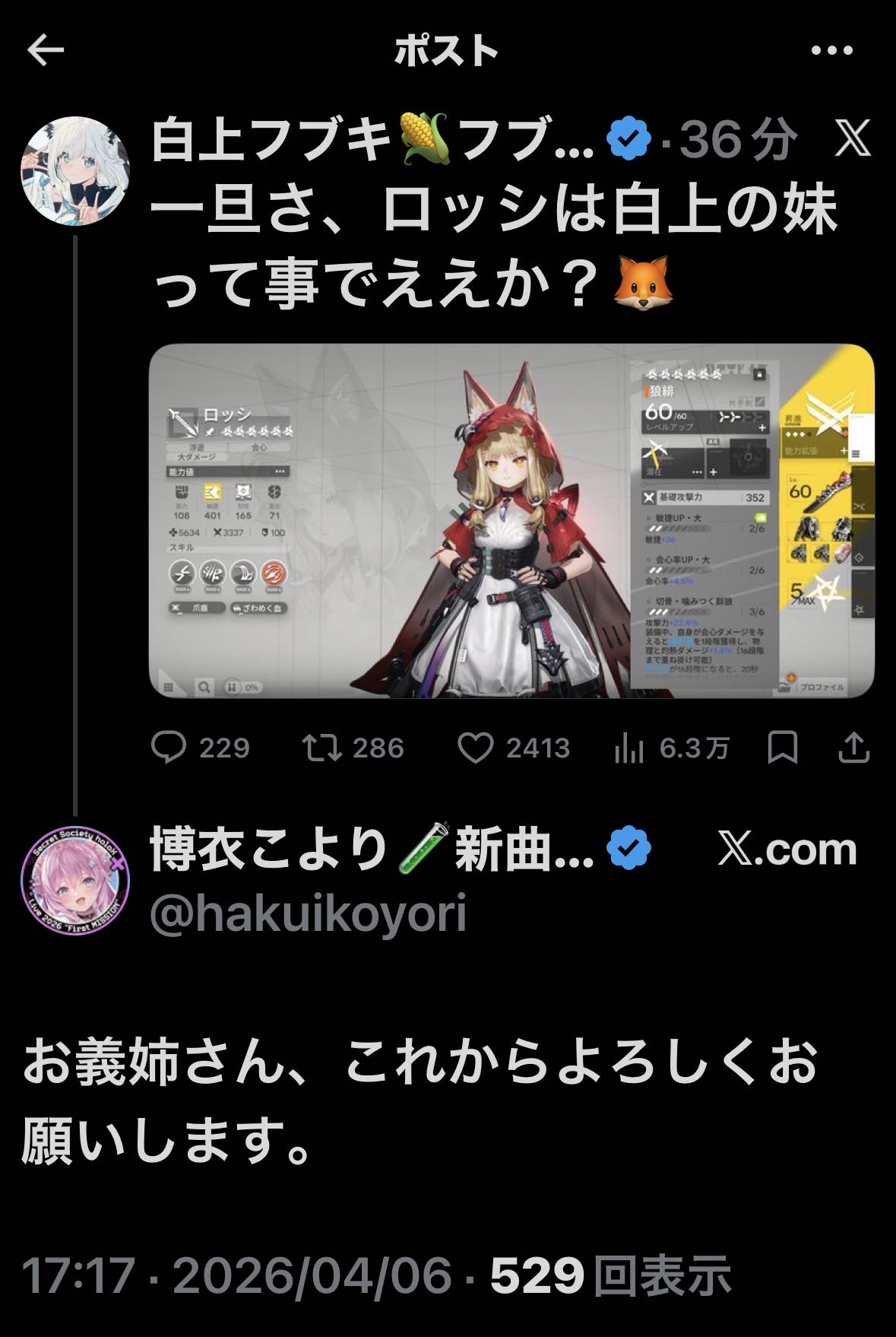| … | 39無題Name名無し 26/04/06(月)16:36:03 IP:60.102.*(bbtec.net)No.11826339そうだねx4>イオフィはそらちゃんの可愛い妹分だったはず… |