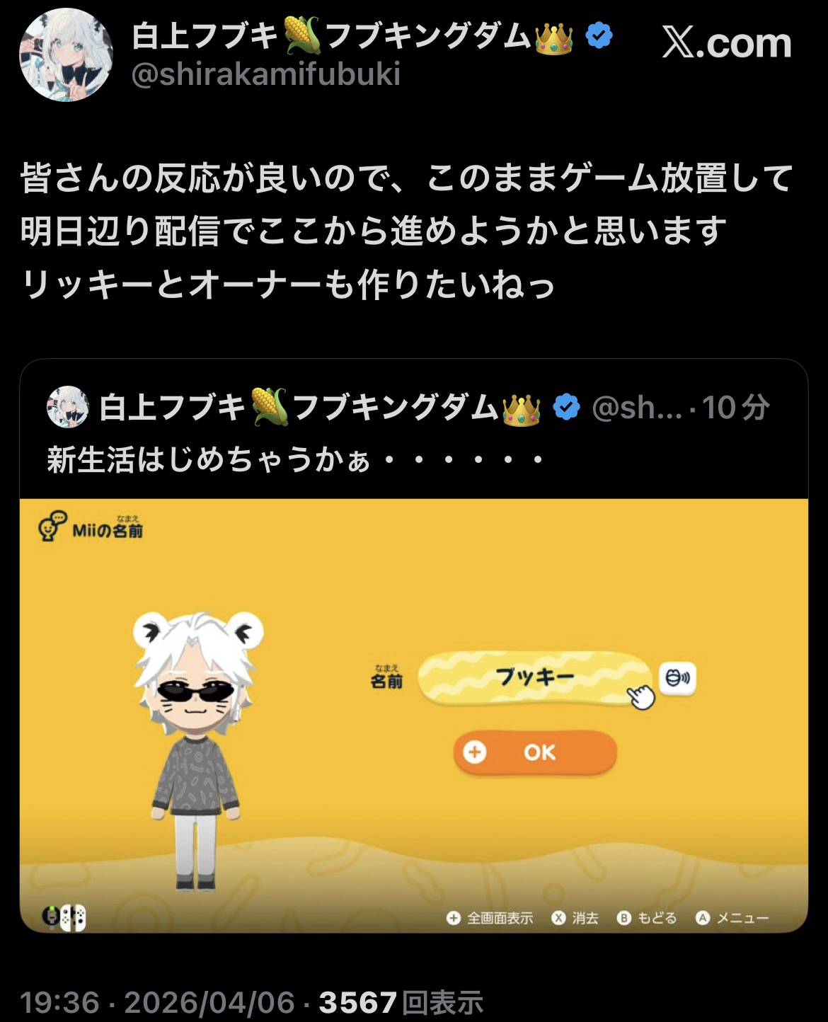 | … | 81無題Name名無し 26/04/06(月)17:51:23 IP:60.98.*(bbtec.net)No.11826403そうだねx10 1775465483479.png-(12924 B) ミオしゃの日常ぽすーとたすかる |